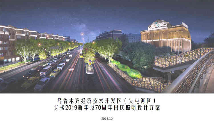 公司經典案列 主頁 > 新聞中心 > 公司經典案列 > 烏魯木齊頭屯河區(qū)迎接2019新年及70周年國慶照明設計方案 日期:2019/5/24 9:55:19 閱讀 3656 烏魯木齊經濟技術開發(fā)區(qū)(頭屯河區(qū)) 迎接2019新年及70周年國慶照明設計方案 2018.10